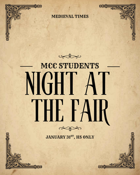 High School Night At The Fair! We’re taking the high school students to Medieval Times for a fun night together, January 31. RSVP here by Jan. 20.